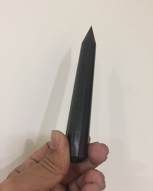 Handcrafted faceted black tourmaline wand. Approximate length 13.5 Cm